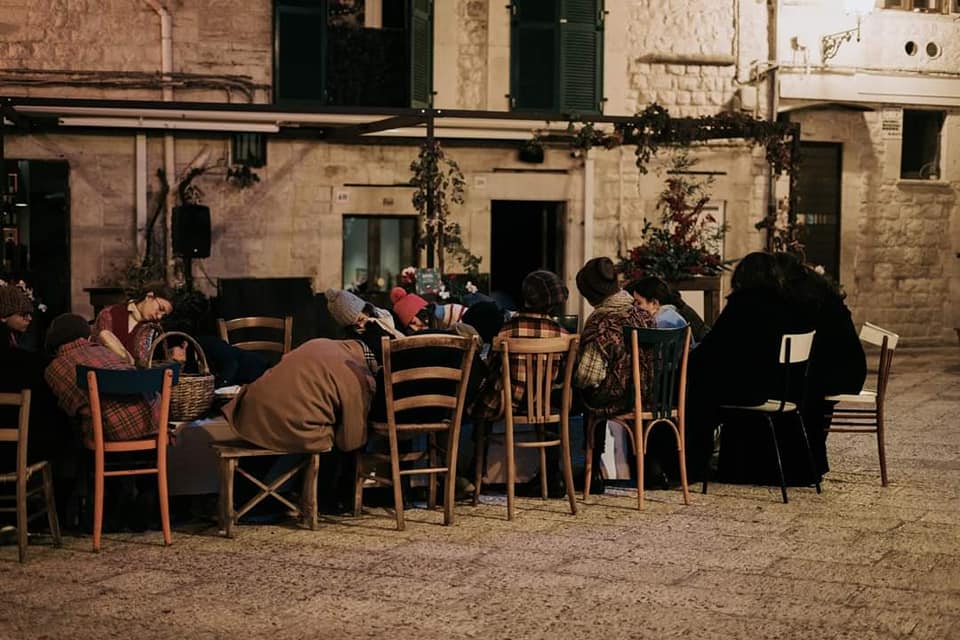 Il nostro presepe di condivisione è iniziato prima che il nostro carillon si animasse, è iniziato quando i genitori dei nostri splendidi bambini hanno cercato con cura gli abiti, gli oggetti di scena e le sedie antiche, quando il signor Nunzio si è messo lì con noi ad allestire il banchetto della frutta, quando il fruttivendolo ha recuperato per noi la bilancia più antica e la piazza ci ha dato le sue chiavi.